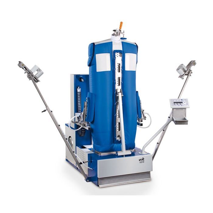 The big advantage of this machine is its universal usability. It is made for shirts and blouses but can also be used for finishing sports jackets and coats. The pneumatic sleeve tensioners for short and long sleeve shirts finish the sleeves without marks. The powerful hot air fan provides enough power to finish shirts very efficiently with good quality. With the exchangeable lapel clamps the finisher can be adapted to your individual needs.